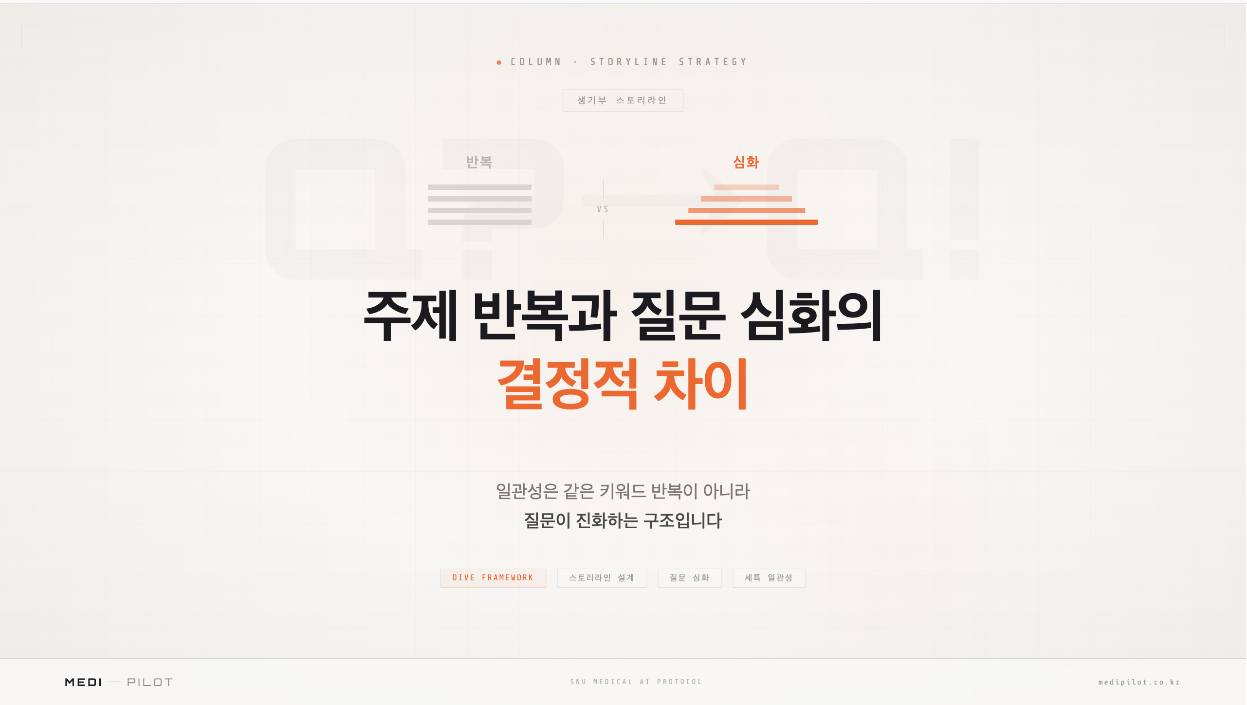 의대 생기부 작성법, 일관성은 같은 키워드 반복이 아니라 질문이 진화하는 구조에서 만들어집니다.