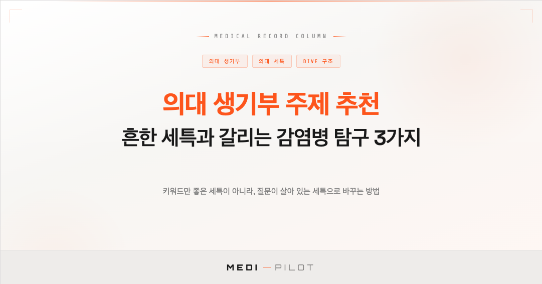 단순 화학 실험 나열이 아닌, 의학적 주제로 심화 확장하는 구체적 전략 3가지 — 메디파일럿 150명+ 합격 분석 기반